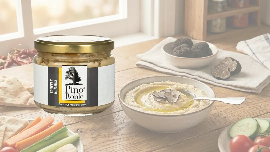 Pino Roble Siyah Trüflü Humus, alıştığımız humus lezzetine daha karakterli bir aroma ekler. Günlük atıştırmalıklarda veya davet sofralarında rahatlıkla tercih edilebilir.