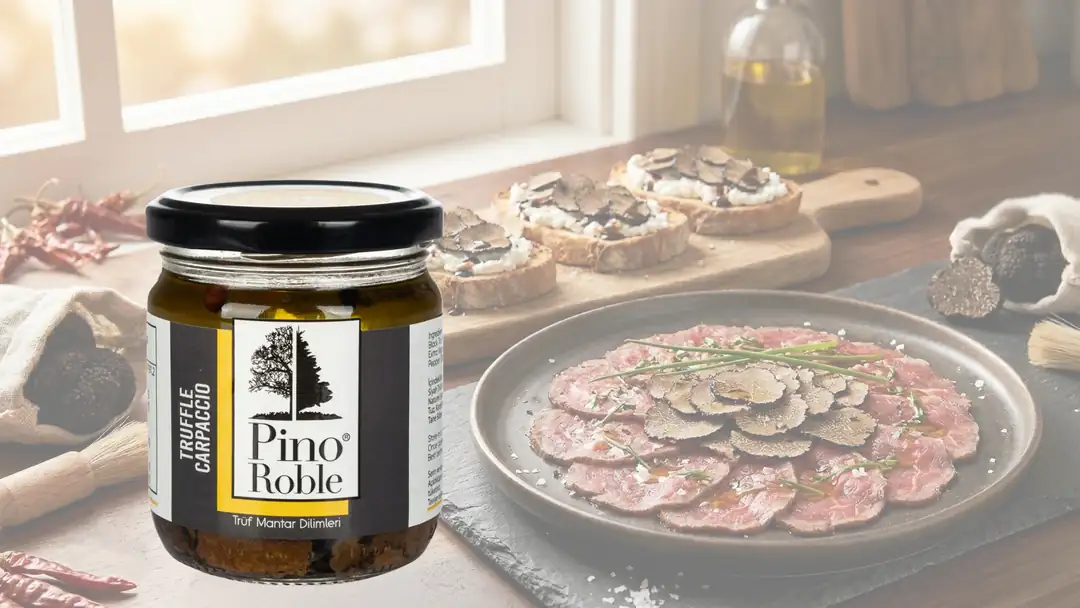 Pino Roble Siyah Trüf Carpaccio, ince dilimleri sayesinde özellikle et yemeklerinin üzerinde çok şık durur. Bruschetta veya peynir tabaklarında da rahatlıkla kullanılabilir.